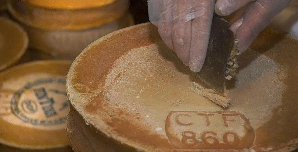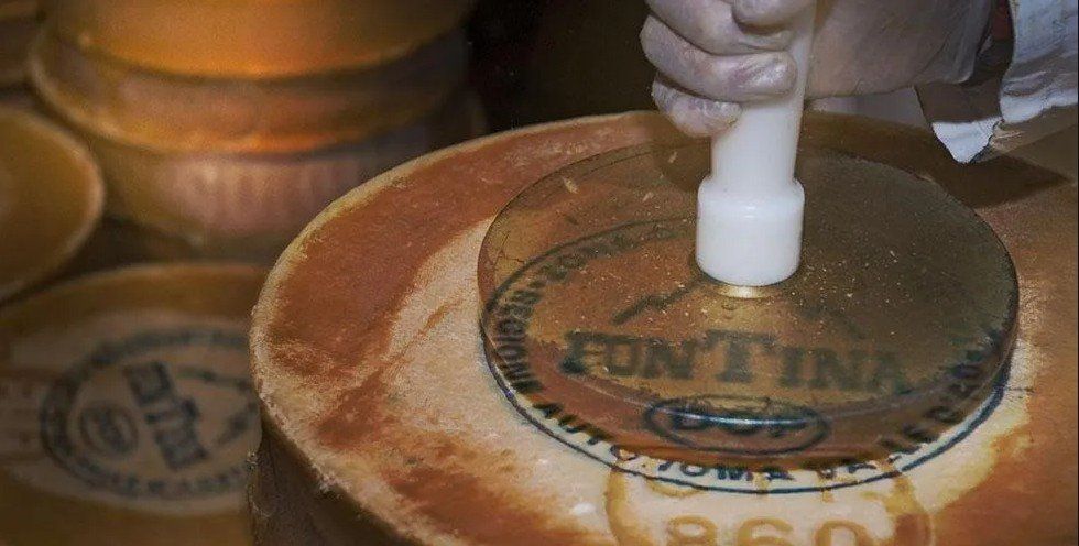 The production process of Fontina D.O.P. uses technology for exclusively physical actions that follow the coagulation: the breaking of the clot, pinning and semi-cooking of the curd (48°C), manual wrapping and shaping, pressing and turning.